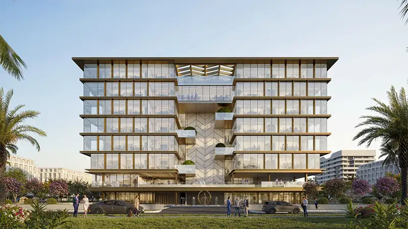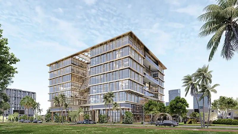 Designed with a focus on productivity, wellness, and sustainability, HQA features contemporary architecture with expansive glass façades that maximize natural light and create energy-efficient workspaces aligned with LEED Gold standards. The development presents a refined business environment where functionality meets modern design.